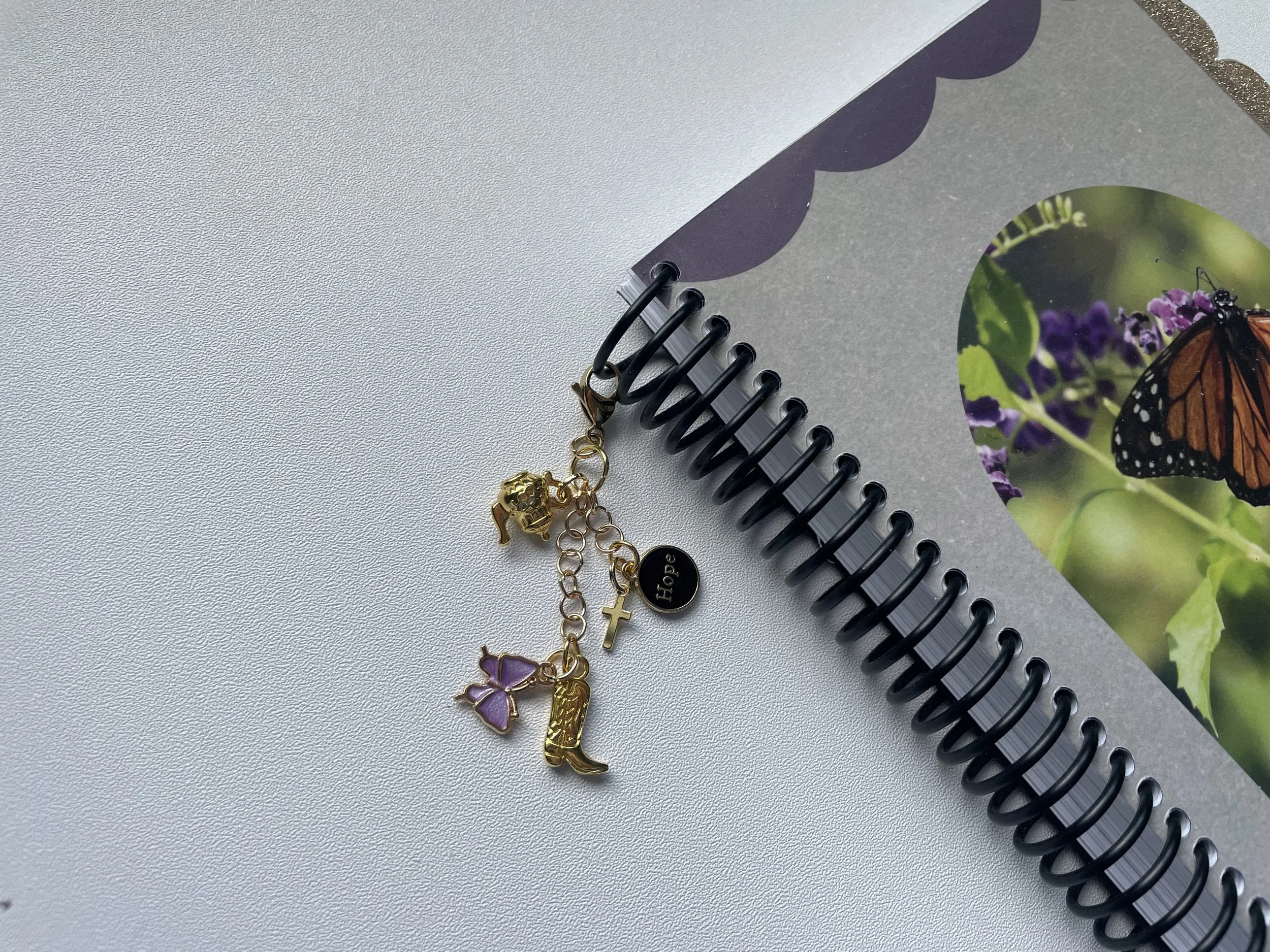 I am such a visual learner, which is why I love Bible journaling. With the journal charms, I get to pick little icons that represent different things. My word for 2026 is walk. I picked a charm with a cowgirl boot to represent walking with Jesus. I love the symbolism of butterflies and how they represent transformation. I love flower imagery to represent growing in my faith and flourishing in life. All these little charm icons remind me of different aspects of my faith.
