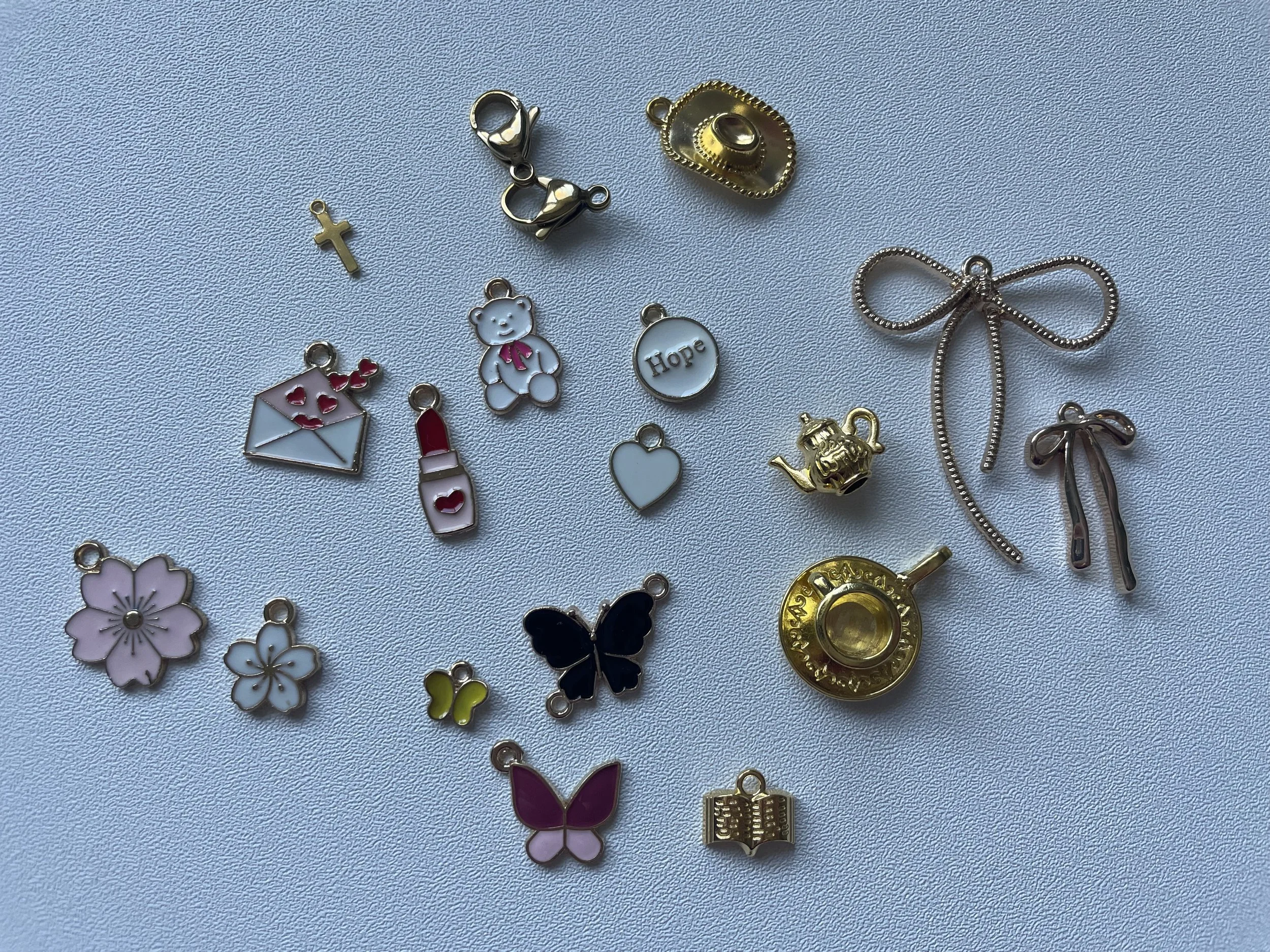 Lobster claw clasps (15 mm is my favorite size for journal charms. They are slightly larger, which makes it easier to attach to the elastic on journals. This is the link to the exact set I got on Amazon.)