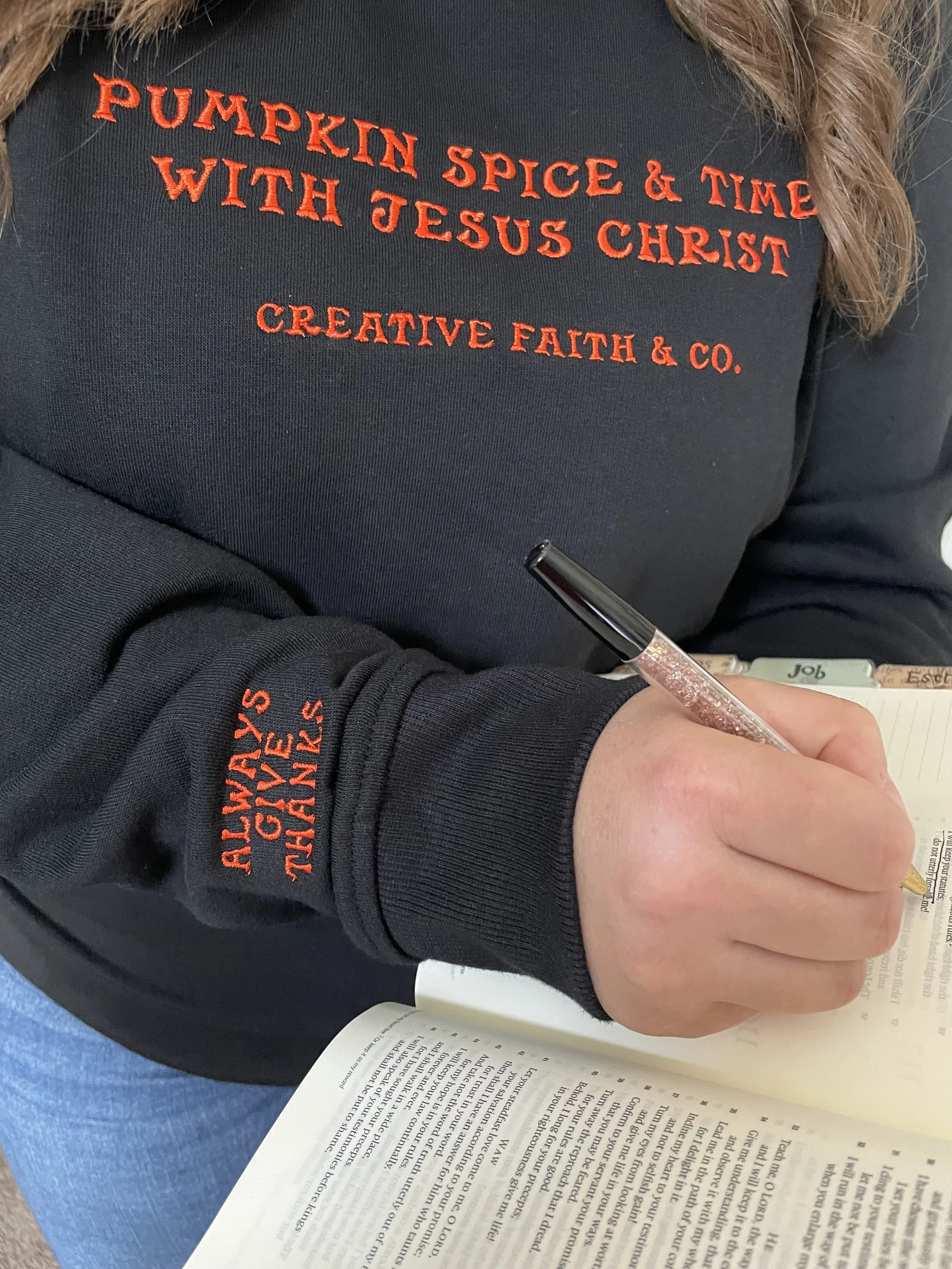 Pumpkin Spice & Time with Jesus Christ embroidered sweatshirt: https://www.etsy.com/listing/4364936130/